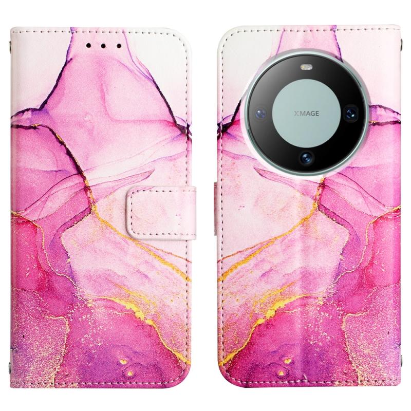 For Huawei Mate 60 PT003 Marble Pattern Flip Leather Phone Case(Pink Purple Gold)