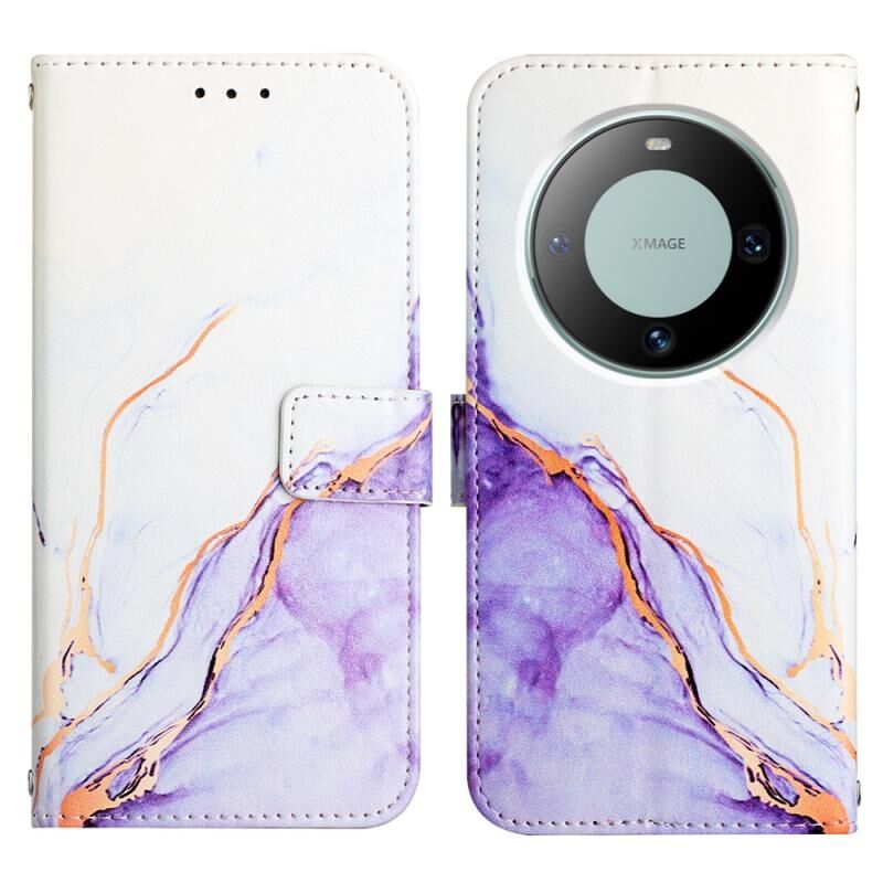 Θήκη τηλεφώνου Huawei Mate 60 PT003 από δέρμα με σχέδιο μαρμάρου και πτυσσόμενο μηχανισμό (Λευκό-Μωβ)