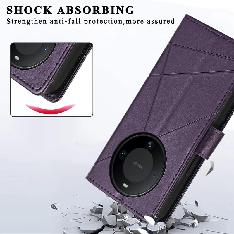 Θήκη τηλεφώνου Huawei Mate 60 PU με γνήσια υφή δέρματος και ανάγλυφο σχέδιο (Μπλε)