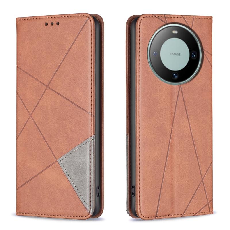 For Huawei Mate 60 Rhombus Texture Magnetic Leather Phone Case(Brown)