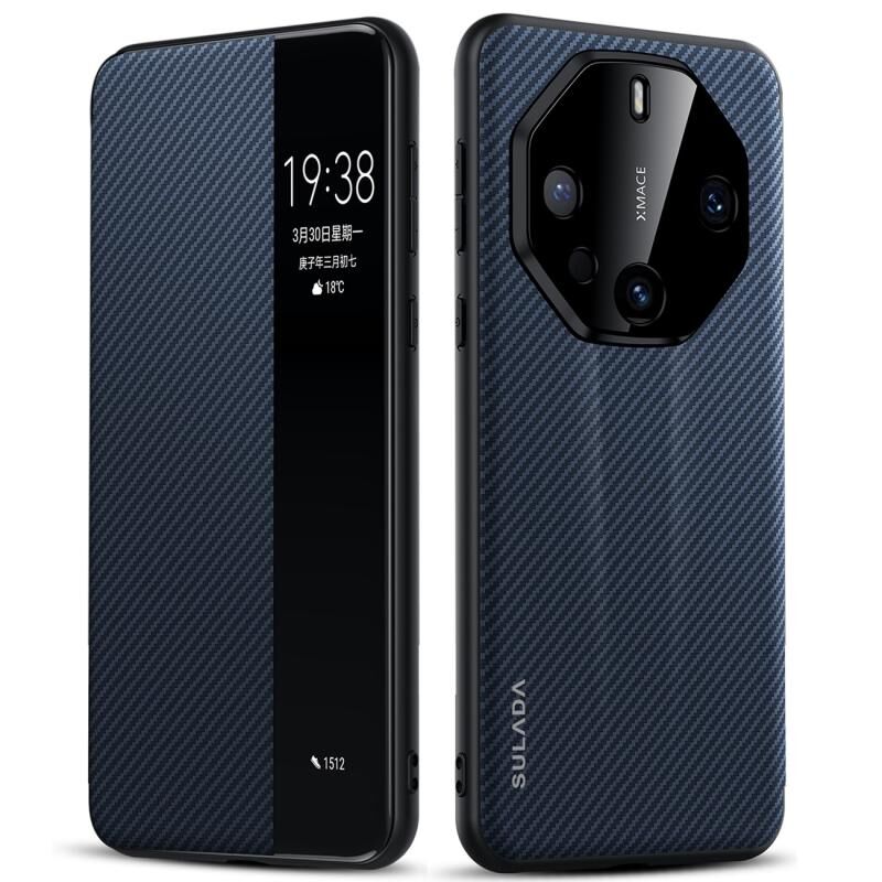 Θήκη τηλεφώνου από δέρμα με έξυπνο παράθυρο, υφή Kevlar 600D SULADA για Huawei Mate 60 RS Ultimate (Μαύρο) (SULADA)