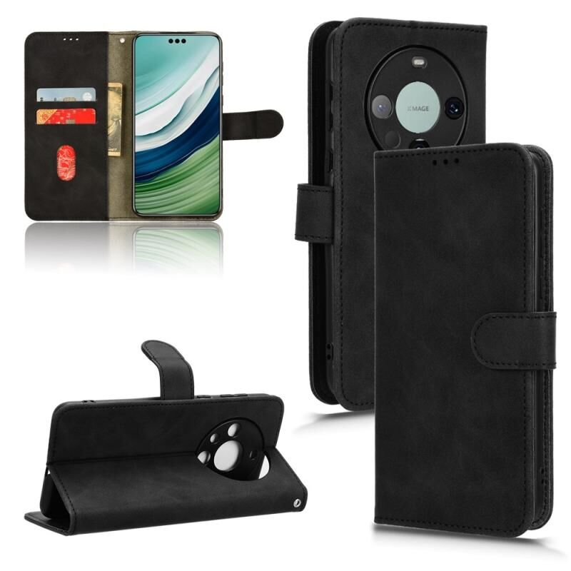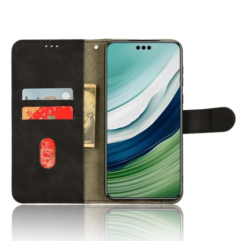 Θήκη τηλεφώνου Huawei Mate 60, δερμάτινη, μαγνητική, τύπου flip, με αίσθηση αφής (Μαύρο)