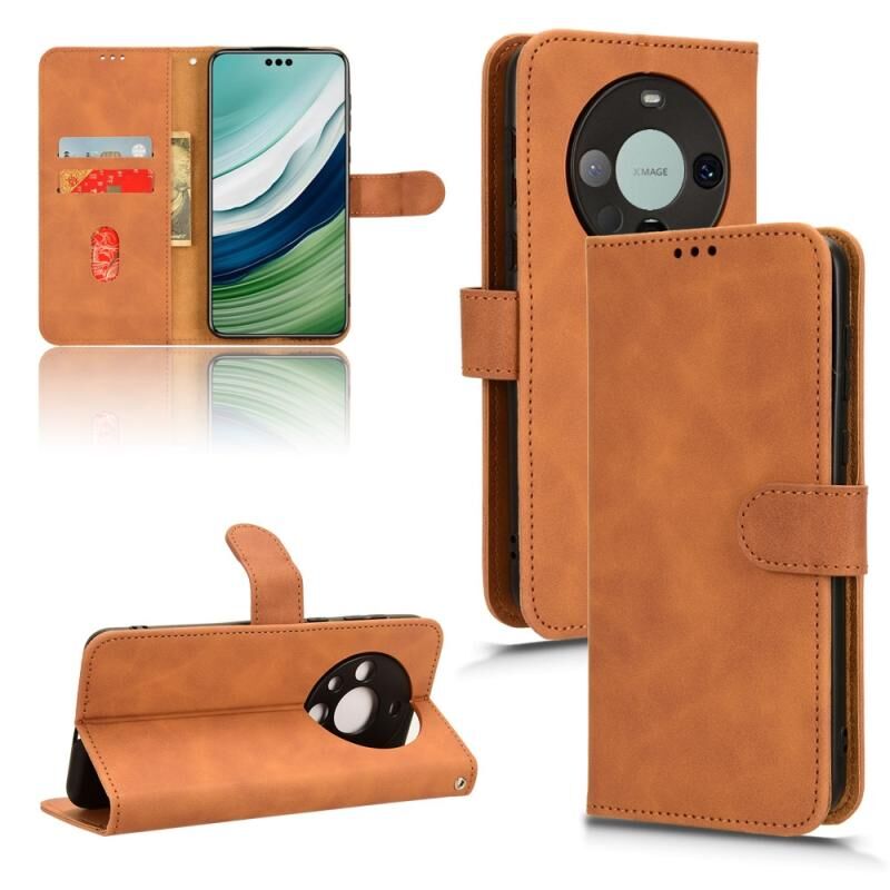 Θήκη τηλεφώνου Huawei Mate 60, δερμάτινη, μαγνητική, τύπου flip, με αίσθηση αφής (Μαύρο)
