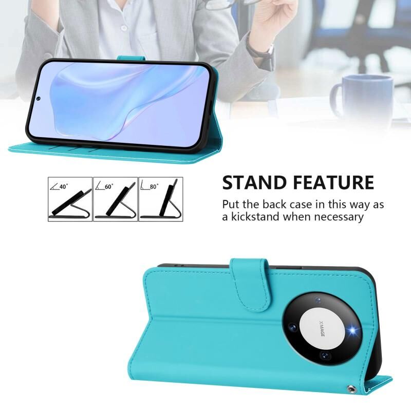 Για το Huawei Mate 60 Skin Feel Solid Color δερμάτινη θήκη τηλεφώνου με κορδόνι (Lake Blue)