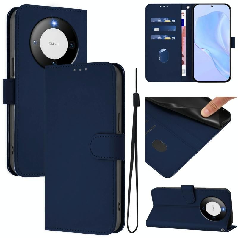 Για το Huawei Mate 60 Skin Feel Solid Color δερμάτινη θήκη τηλεφώνου με κορδόνι (Navy Blue)