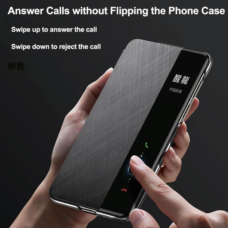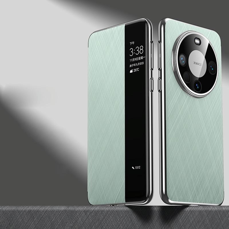 For Huawei Mate 60 Smart View Window Plain Leather Paint PC Phone Case(Cyan-blue)