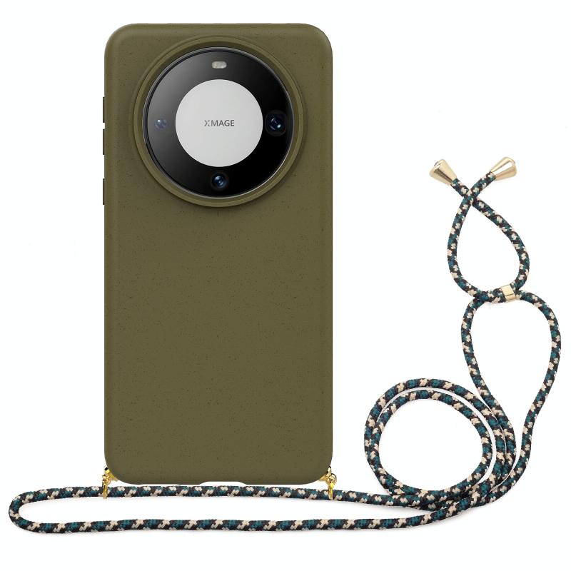 For Huawei Mate 60 Wheat Straw Material + TPU Phone Case with Lanyard(Army Green)