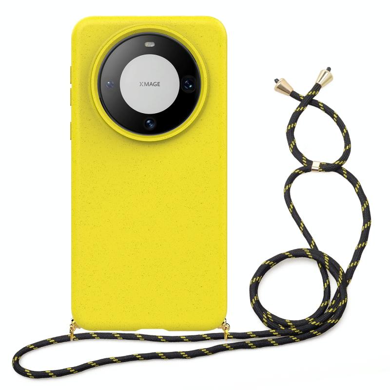 For Huawei Mate 60 Wheat Straw Material + TPU Phone Case with Lanyard(Yellow)