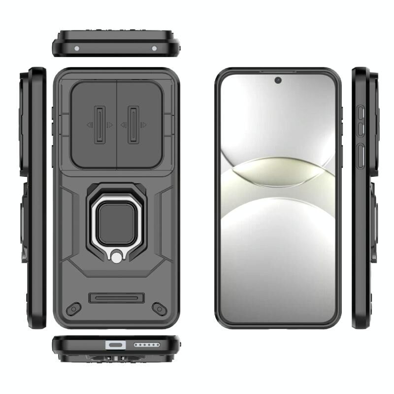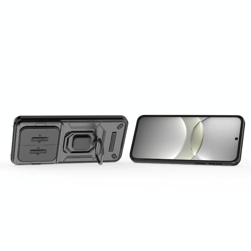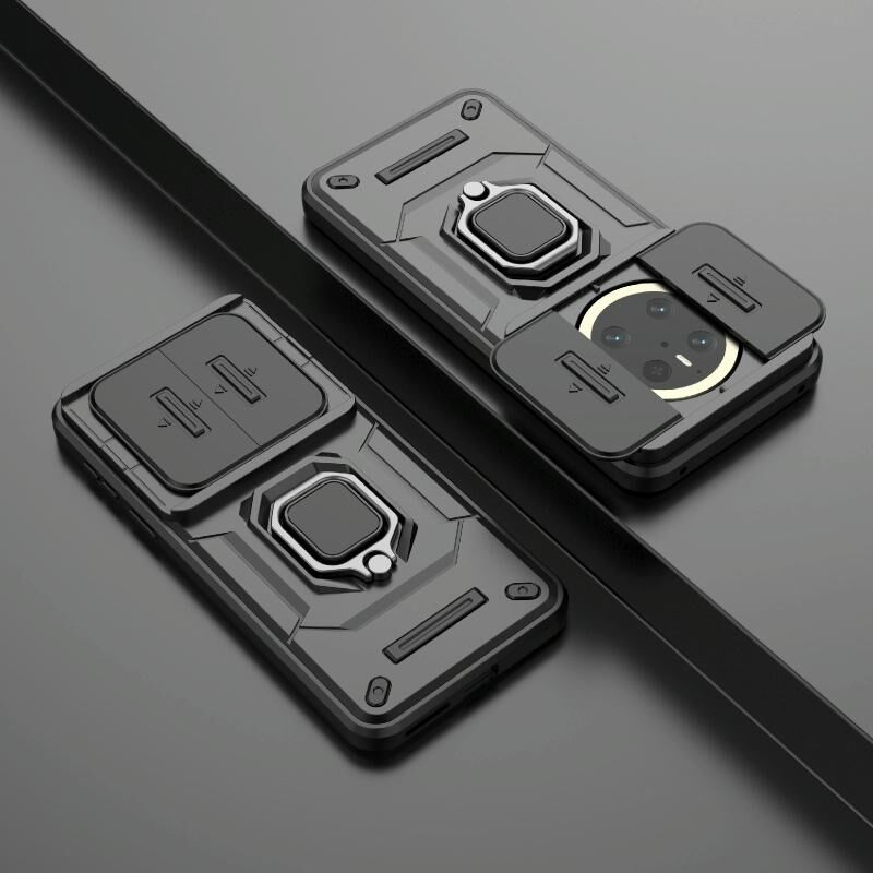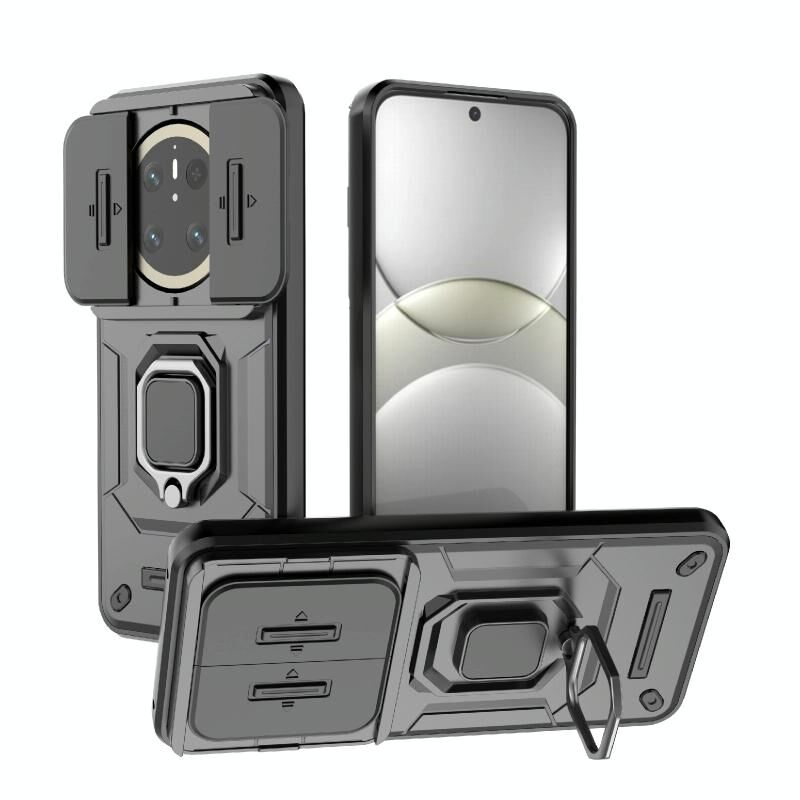Θήκη κινητού τηλεφώνου για Huawei Mate 70 5G με ολισθαίνουσα προστασία κάμερας, κατασκευασμένη από TPU + PC, ανθεκτική σε κρούσεις, με βάση στήριξης (Μαύρο)
