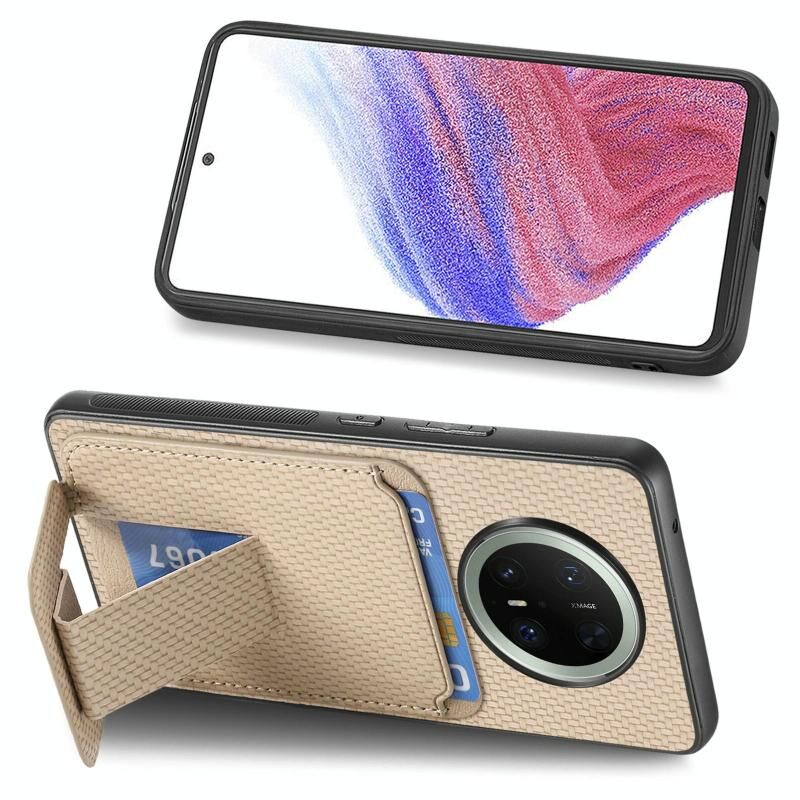 Θήκη τηλεφώνου για Huawei Mate 70 Carbon Fiber Card Bag Fold Stand (Μπλε)