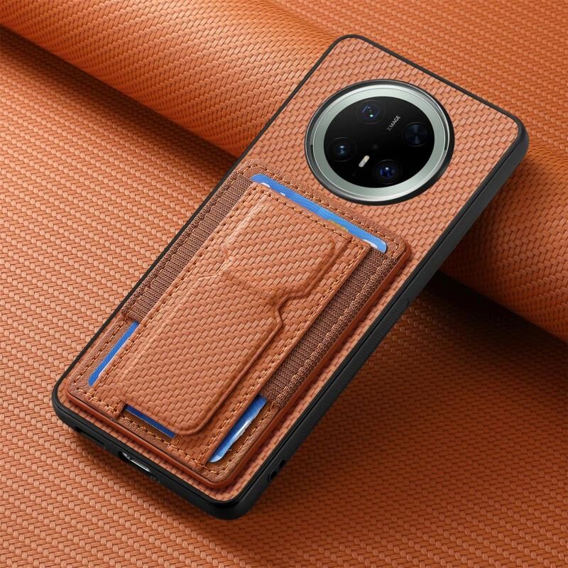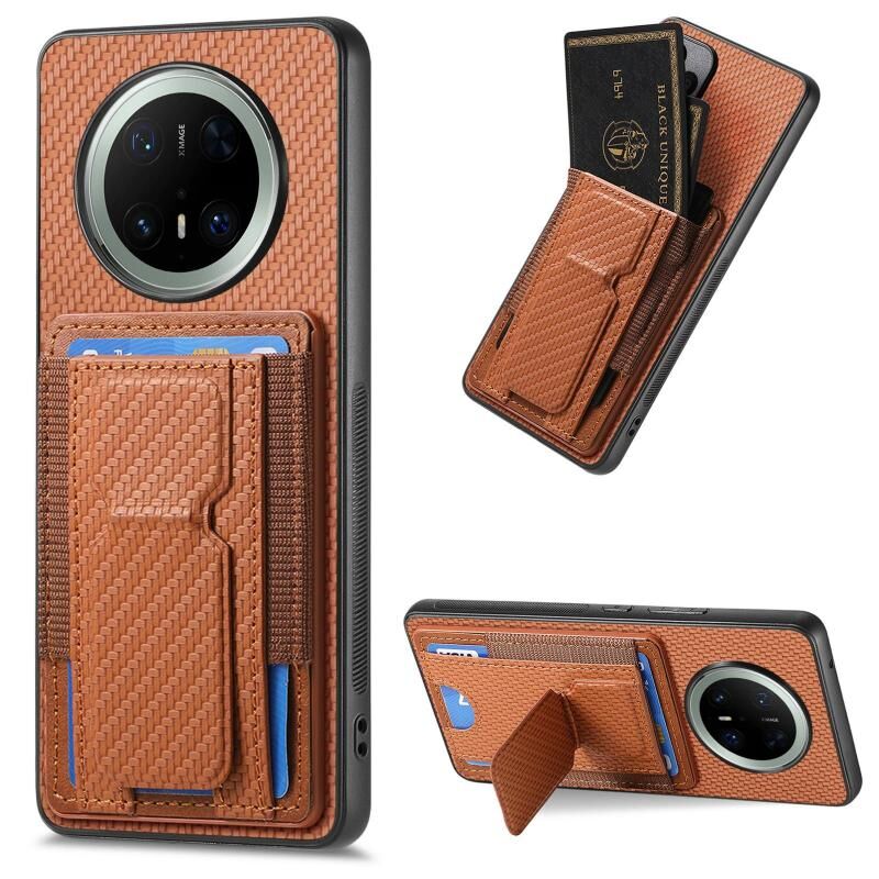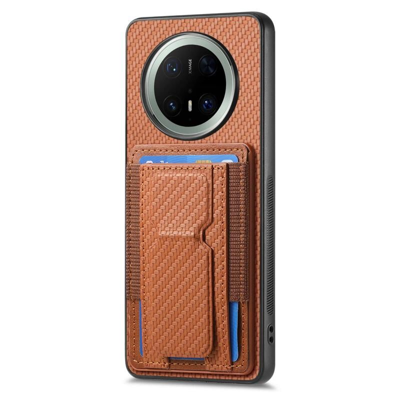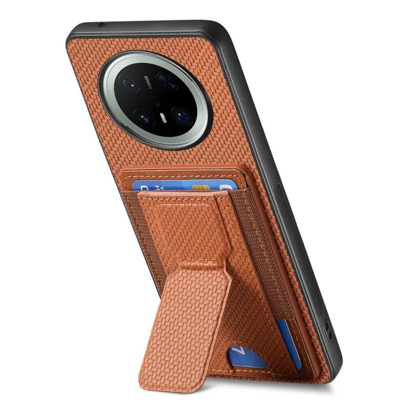 Θήκη τηλεφώνου για Huawei Mate 70, από ανθρακονήματα, με πτυσσόμενη βάση, ελαστική θήκη για κάρτες (Μπλε)
