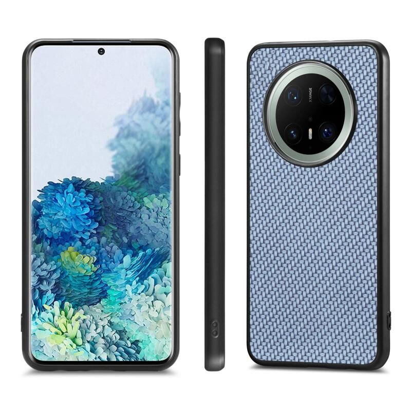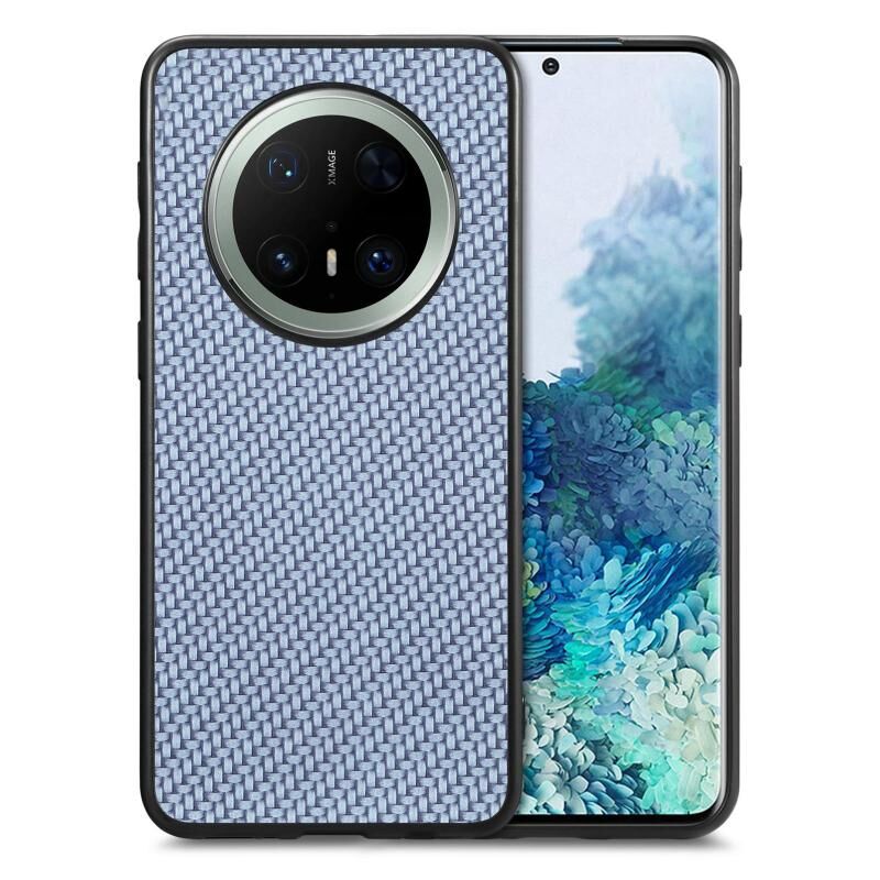 Θήκη κινητού τηλεφώνου Huawei Mate 70 με υφή ανθρακονημάτων και δερμάτινη πλάτη (Μπλε)
