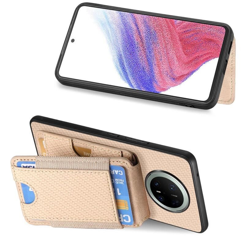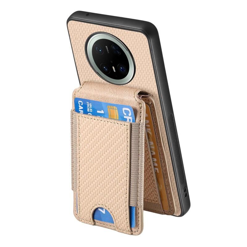 For Huawei Mate 70 Carbon Fiber Vertical Flip Wallet Stand Phone Case(Khaki)