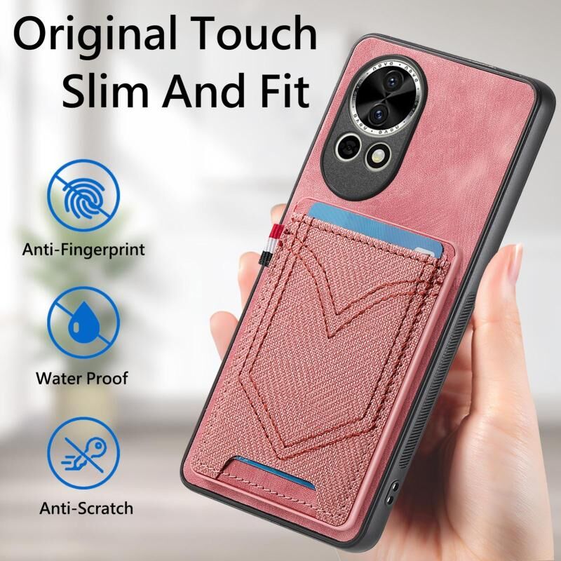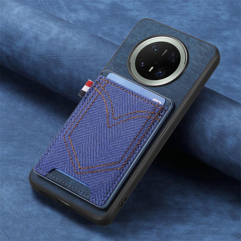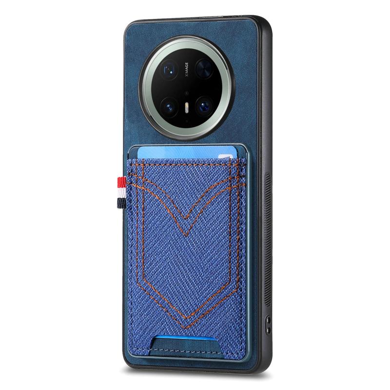 Θήκη τηλεφώνου Huawei Mate 70 με υφή denim και δερμάτινη όψη με θήκη για κάρτες (Μπλε)