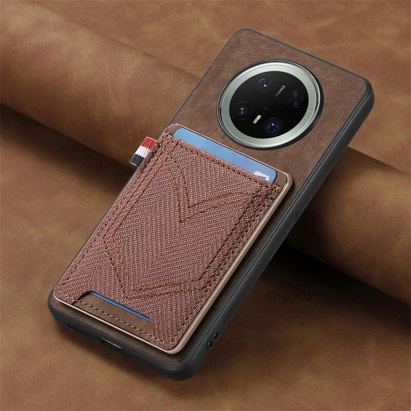 Θήκη τηλεφώνου Huawei Mate 70 με υφή denim και δερμάτινη όψη με θήκη για κάρτες (Καφέ)