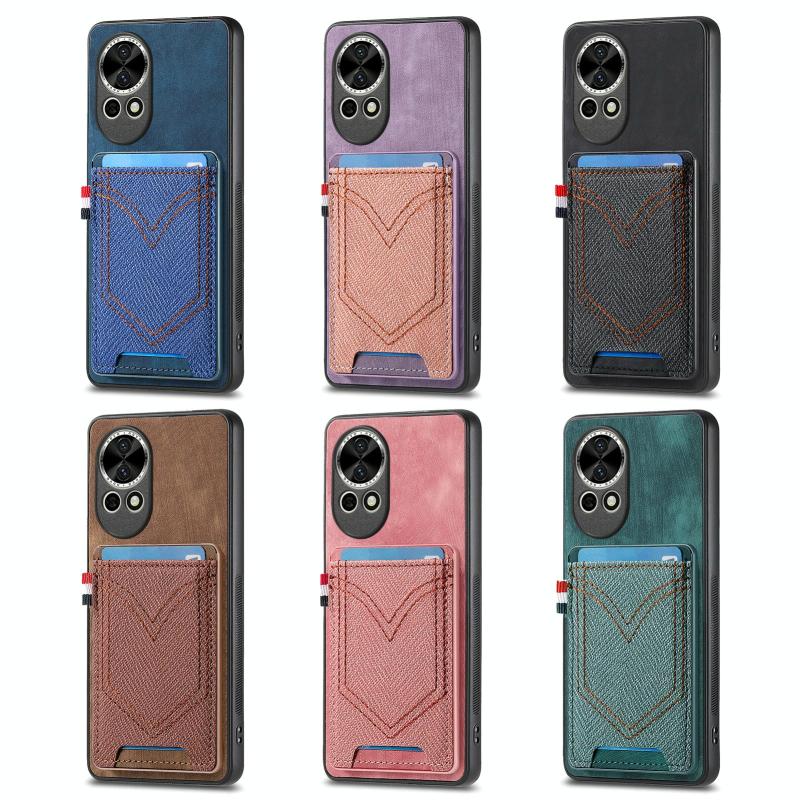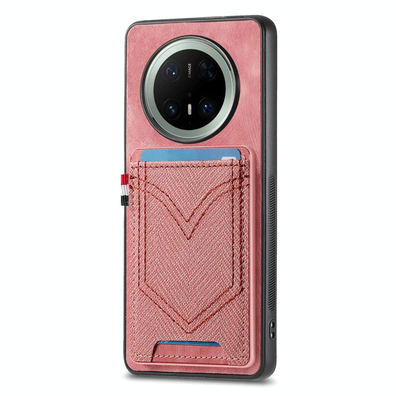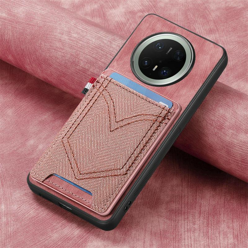 Θήκη τηλεφώνου Huawei Mate 70 με υφή denim και δερμάτινη όψη με θήκη για κάρτες (ρόζ)