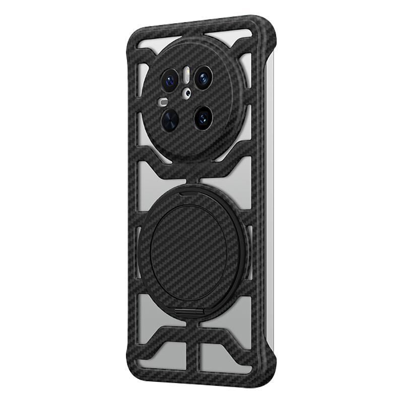 For Huawei Mate 70 Hollow Carbon Fiber Rotating Bracket MagSafe Phone Case(Black)