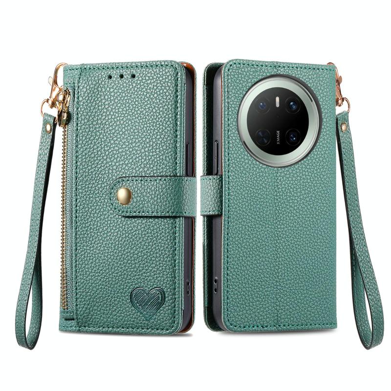 For Huawei Mate 70 Love Zipper Lanyard Leather Phone Case(Green)