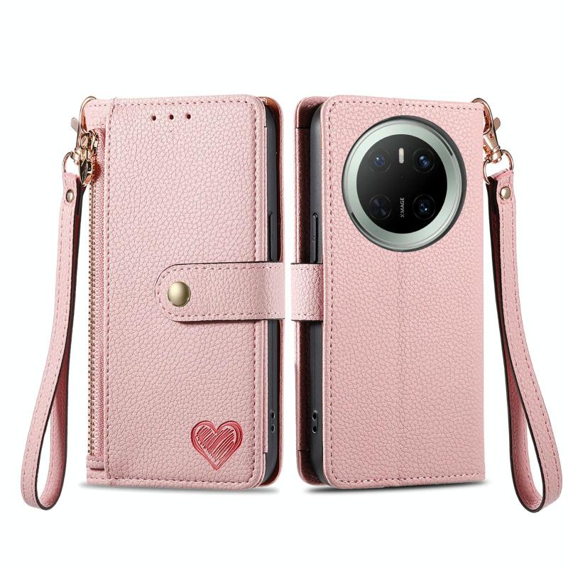 For Huawei Mate 70 Love Zipper Lanyard Leather Phone Case(Pink)