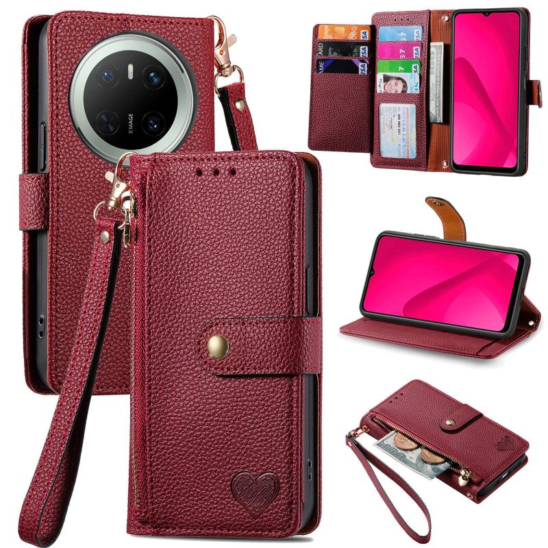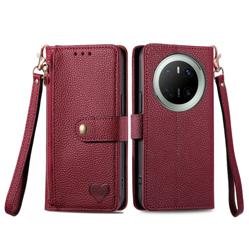 For Huawei Mate 70 Love Zipper Lanyard Leather Phone Case(Red)