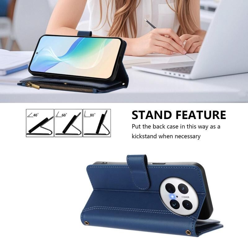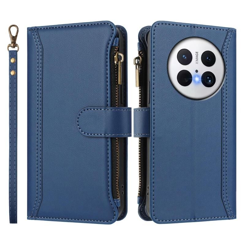 Για Huawei Mate 70 Μαγνητικό Κλείσιμο 9 Θήκες Κάρτας Δερμάτινη Θήκη με Φερμουάρ και Λουρί Χεριού (Σκούρο μπλε)