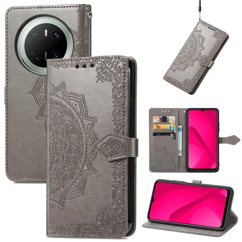 Θήκη τηλεφώνου Huawei Mate 70 με ανάγλυφο σχέδιο λουλουδιού Mandala από δέρμα (Χρυσό Ρόδι)