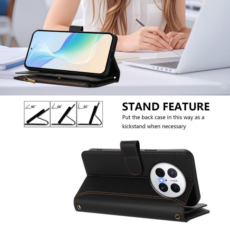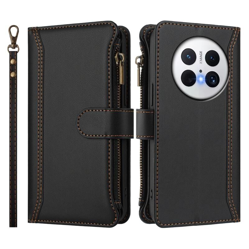 Για Huawei Mate 70 Pro / 70 Pro+ Μαγνητικό Κλείσιμο 9 Θήκες Κάρτας Δερμάτινη Θήκη με Φερμουάρ και Λουρί Χεριού (Σκούρο Μπλε)