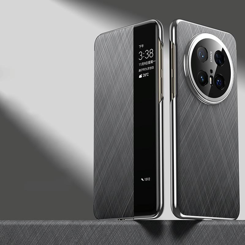 For Huawei Mate 70 Pro / 70 Pro+ Smart View Window Plain Leather Paint PC Phone Case(Grey)