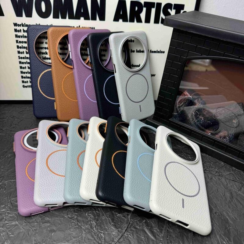 Θήκη τηλεφώνου Huawei Mate 70 Pro / 70 Pro+ Λεπτή Κυκλική MagSafe Δέρμα Λύτσι TPU (Μωβ Πορτοκαλί)