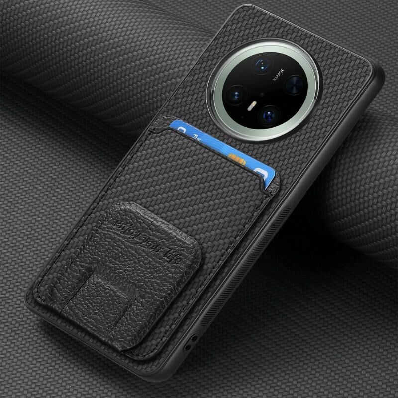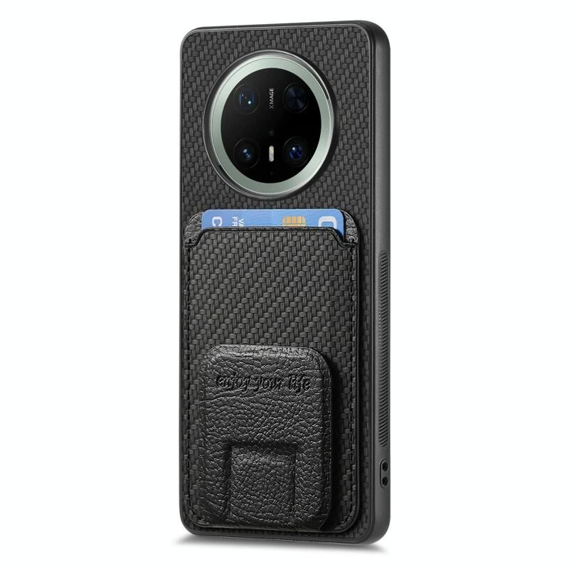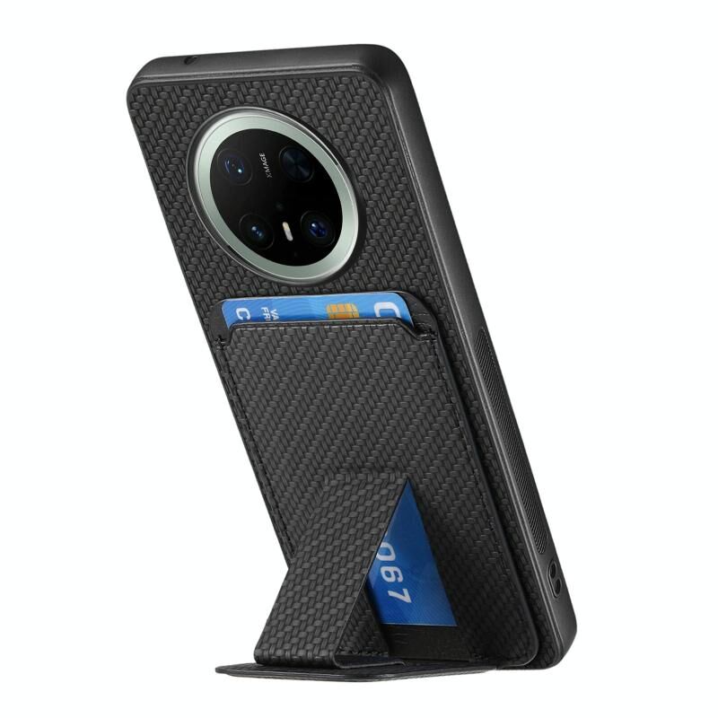 Θήκη τηλεφώνου για Huawei Mate 70 Pro+ Carbon Fiber Card Bag Fold Stand (Μαύρο)