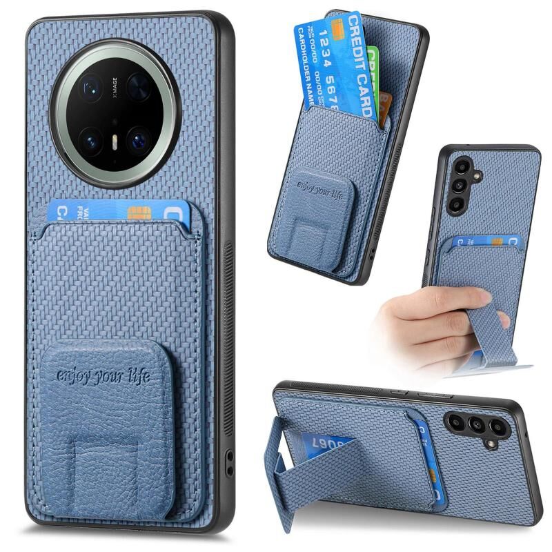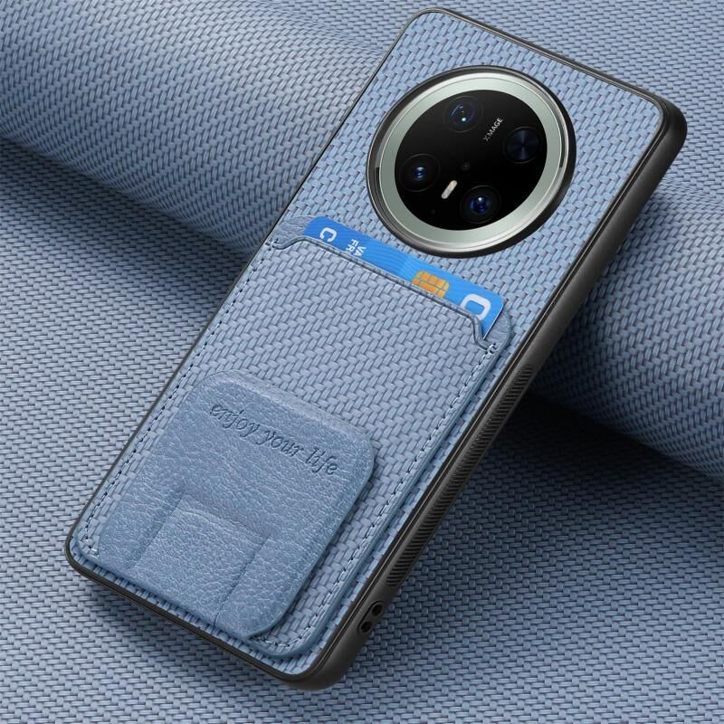 Θήκη τηλεφώνου για Huawei Mate 70 Pro από ανθρακονήματα με κάρτες και βάση στήριξης (Μπλε)