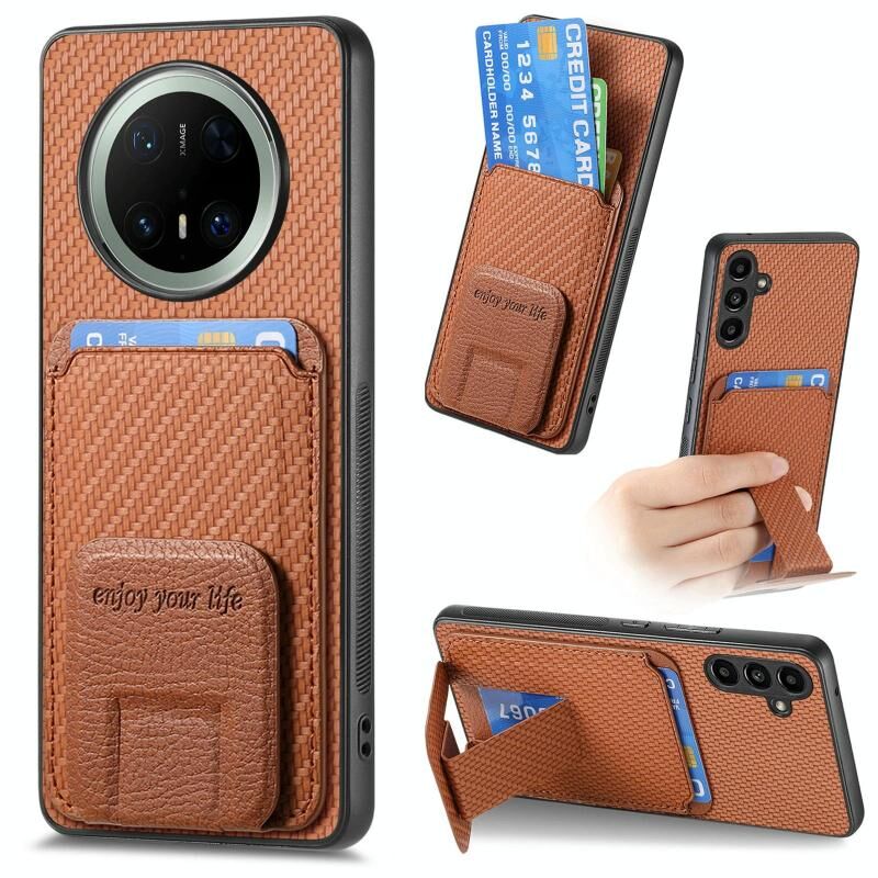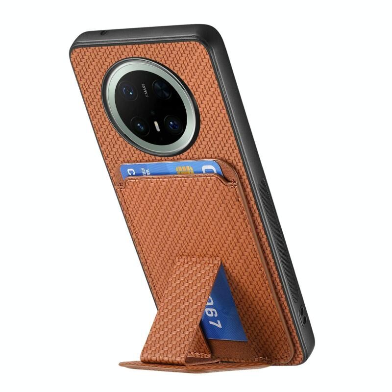 Θήκη τηλεφώνου για Huawei Mate 70 Pro+ Carbon Fiber Card Bag Fold Stand (Καφέ)