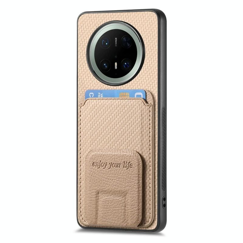 Θήκη τηλεφώνου για Huawei Mate 70 Pro από ανθρακονήματα με κάρτες και βάση στήριξης (Χακί)
