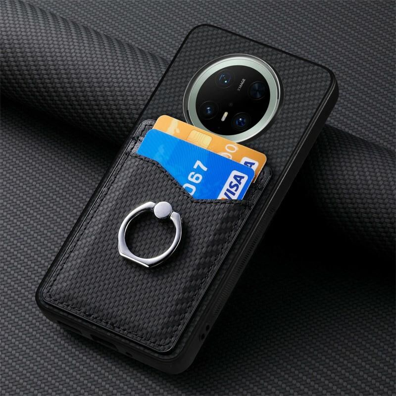 Θήκη τηλεφώνου με δακτύλιο και κάρτες από ανθρακονήματα για Huawei Mate 70 Pro (Μαύρο)