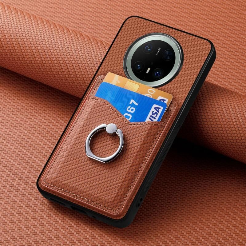 Θήκη τηλεφώνου με δακτύλιο και κάρτες από ανθρακονήματα για Huawei Mate 70 Pro+ (Μαύρο)