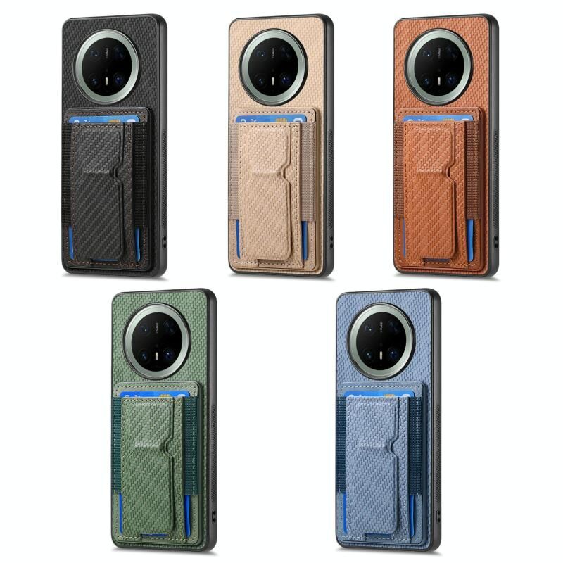 Θήκη τηλεφώνου για Huawei Mate 70 Pro+ Carbon Fiber με πτυσσόμενη βάση, ελαστική θήκη καρτών (Μπλε)