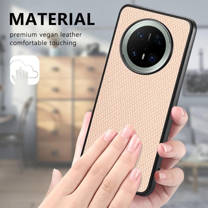 Θήκη κινητού τηλεφώνου Huawei Mate 70 Pro με υφή ανθρακονημάτων και δερμάτινη πλάτη (Μαύρο)