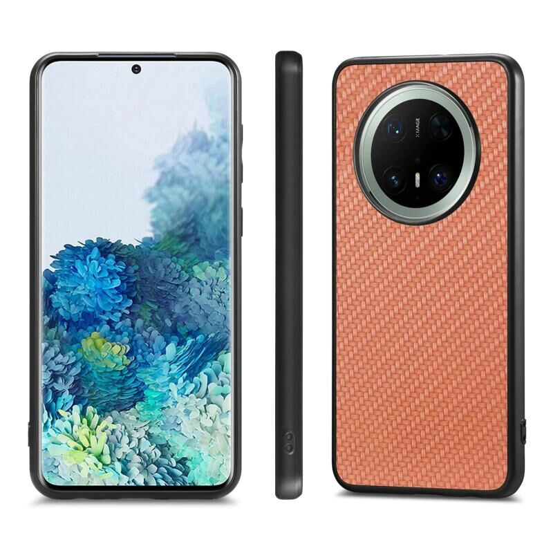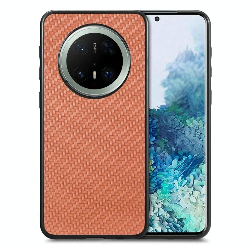 Θήκη κινητού τηλεφώνου Huawei Mate 70 Pro με υφή ανθρακονημάτων και δερμάτινη πλάτη (Μαύρο)