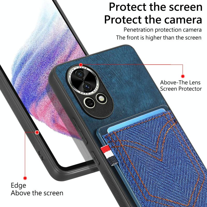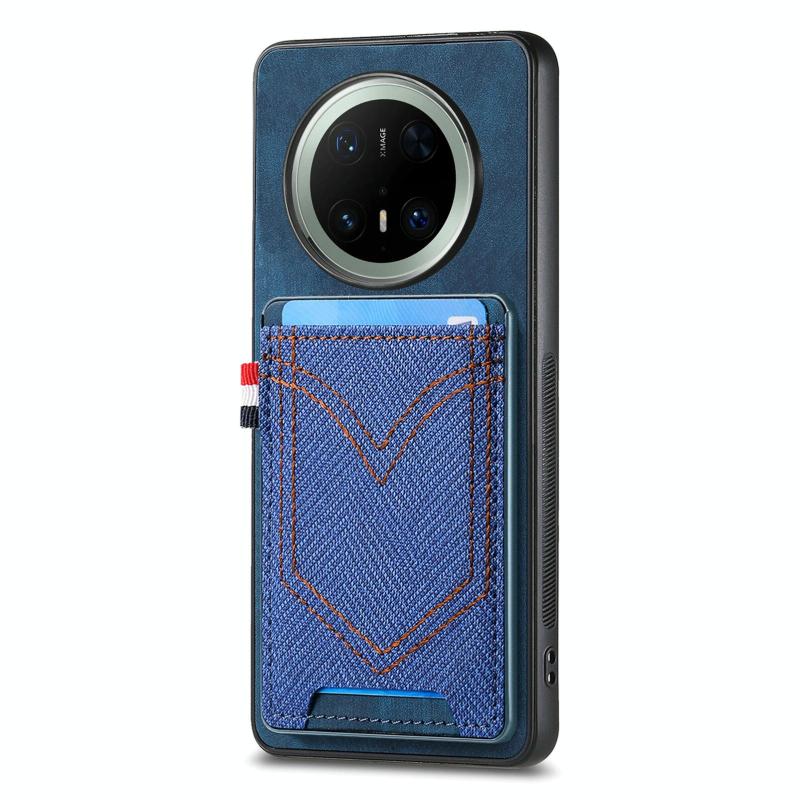Θήκη τηλεφώνου Huawei Mate 70 Pro+ με υφή denim και δερμάτινη όψη, με θήκη για κάρτες (Μωβ)