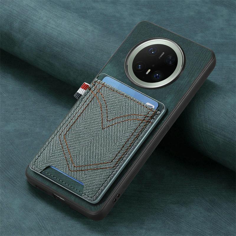 Θήκη τηλεφώνου Huawei Mate 70 Pro+ με υφή denim και δερμάτινη όψη, με θήκη για κάρτες (Μωβ)