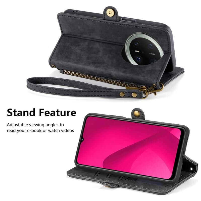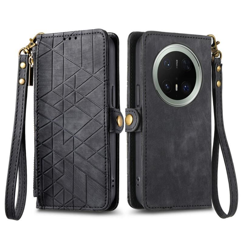 Θήκη τηλεφώνου Huawei Mate 70 Pro+ Γεωμετρικό Πορτοφόλι με Φερμουάρ και Αγκράφα στο Πλάι από Δέρμα (Μαύρο)