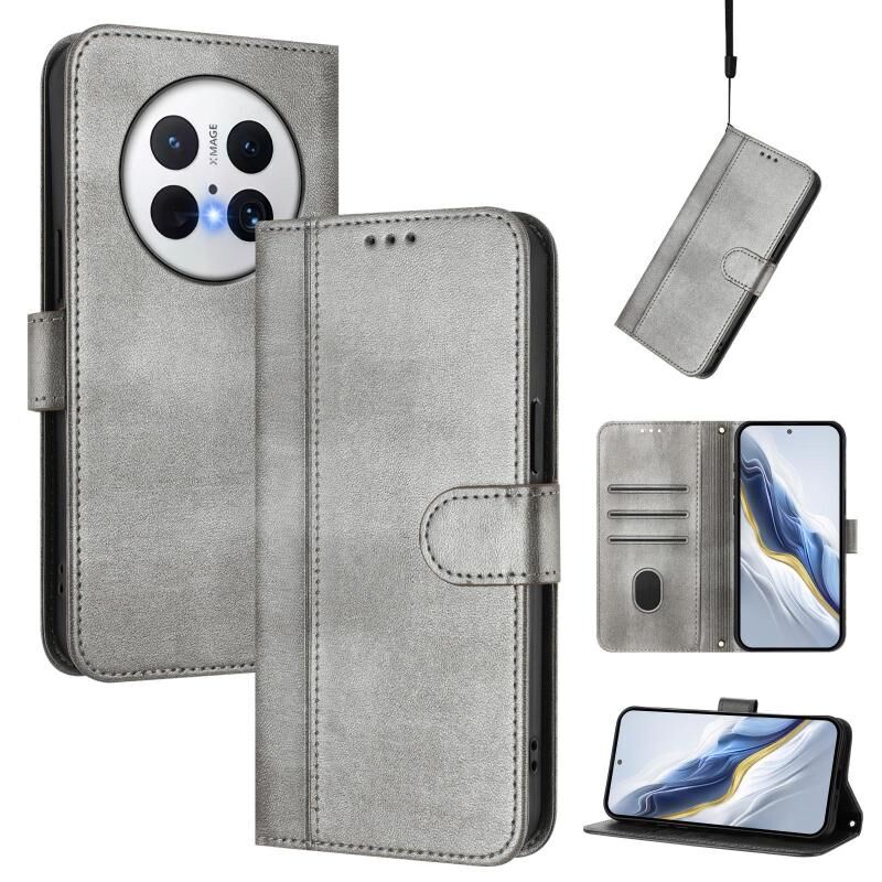 Θήκη τηλεφώνου Huawei Mate 70 Pro Line από δέρμα retro με αγκράφα ένωσης (Γκρι)