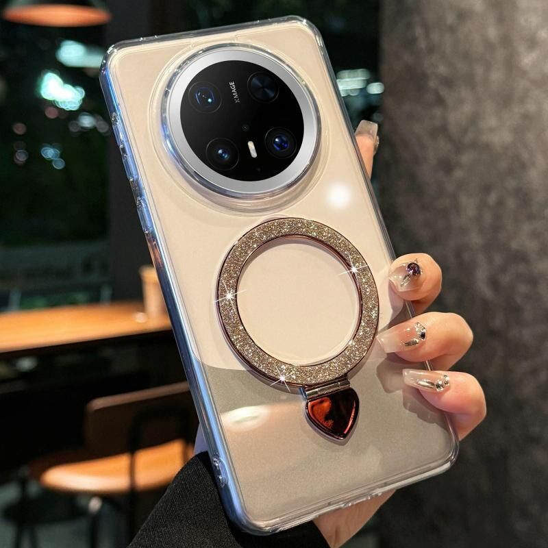 For Huawei Mate 70 Pro Love Glitter Powder MagSafe Holder Phone Case(Gold)