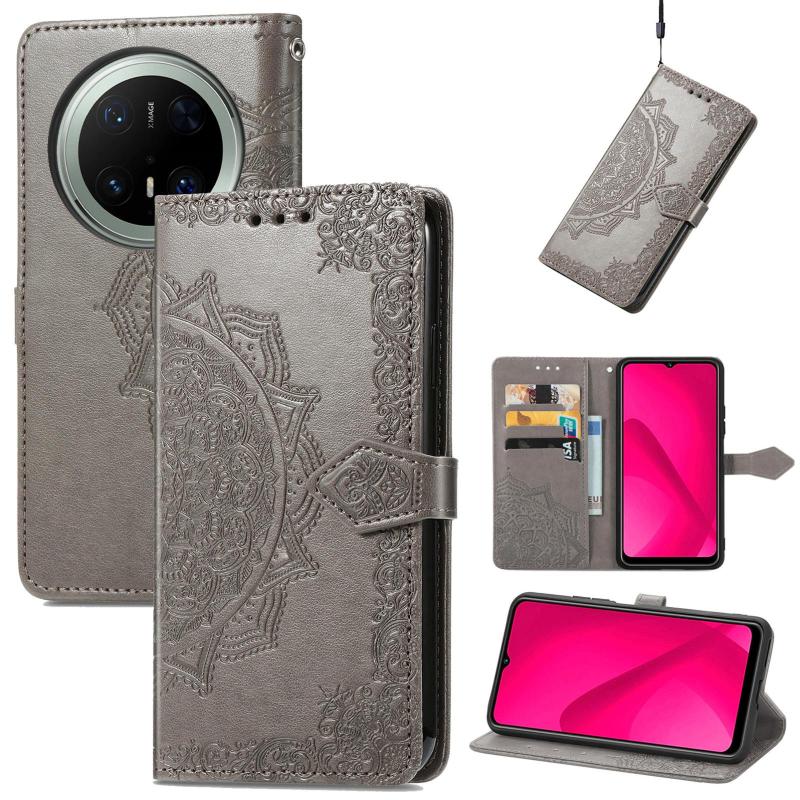 Θήκη τηλεφώνου Huawei Mate 70 Pro+ από δέρμα με ανάγλυφο σχέδιο Mandala Flower (Χρυσό Ρόδι)