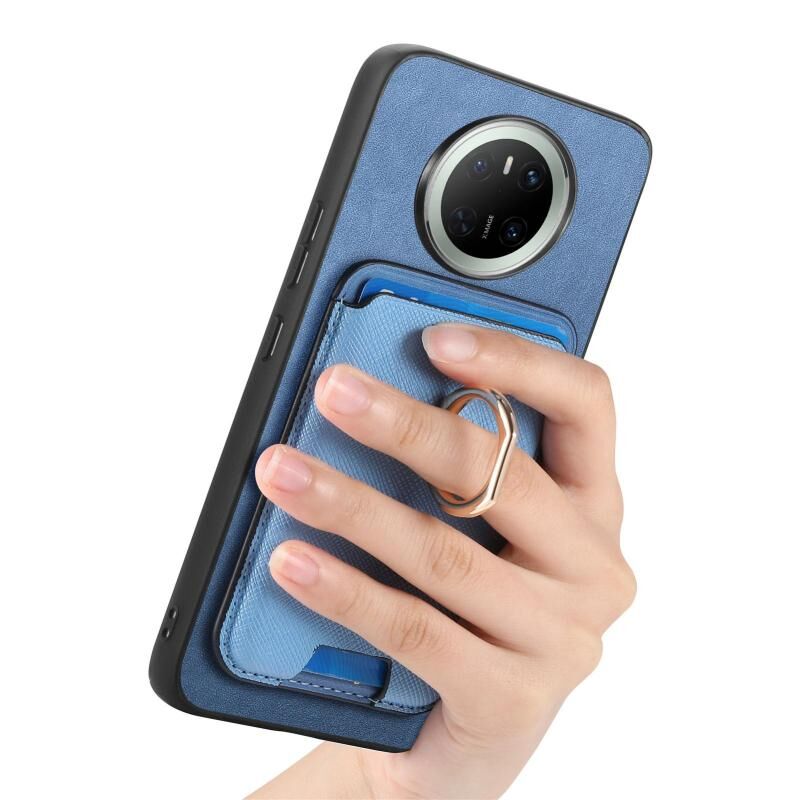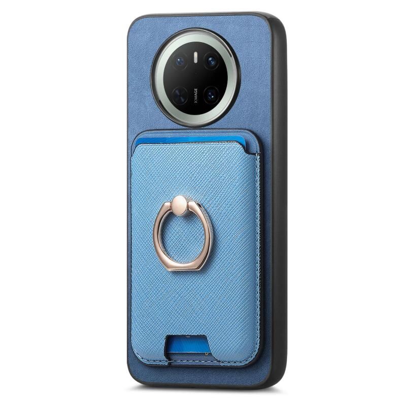 For Huawei Mate 70 Pro Retro Cross Leather Ring Vertical Insert Card Bag MagSafe Phone Case(Blue)
