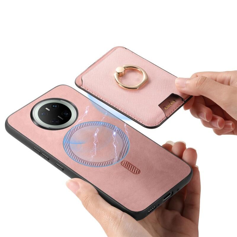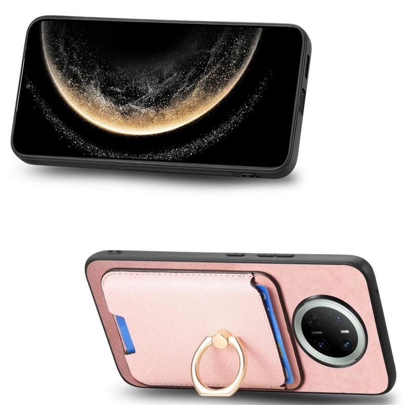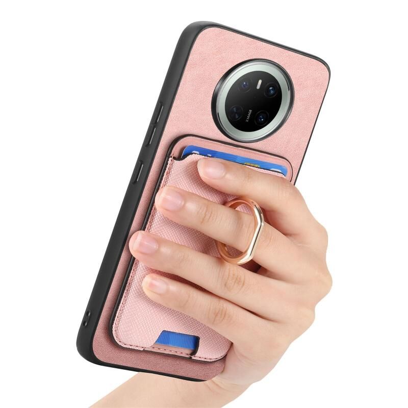 For Huawei Mate 70 Pro Retro Cross Leather Ring Vertical Insert Card Bag MagSafe Phone Case(Pink)