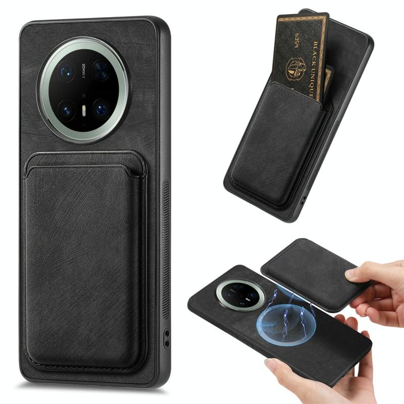 Θήκη τηλεφώνου με μαγνητικό κλείσιμο και κάρτες από δέρμα retro για Huawei Mate 70 Pro+ (Μαύρο)
