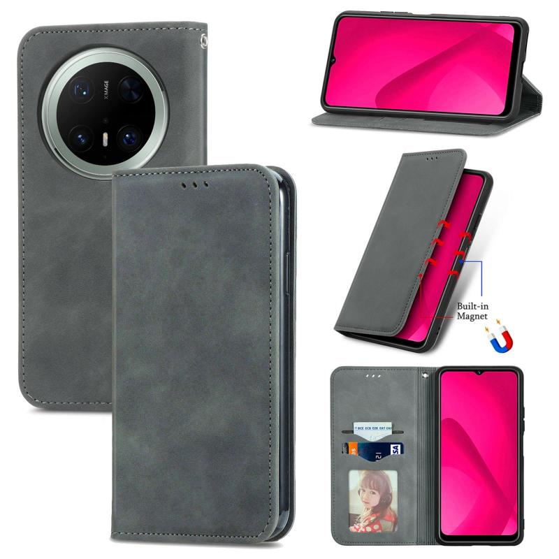 For Huawei Mate 70 Pro+ Retro Skin Feel Magnetic Flip Leather Phone Case(Gray)
