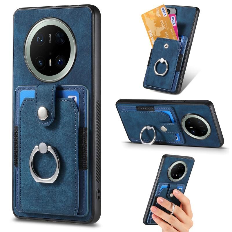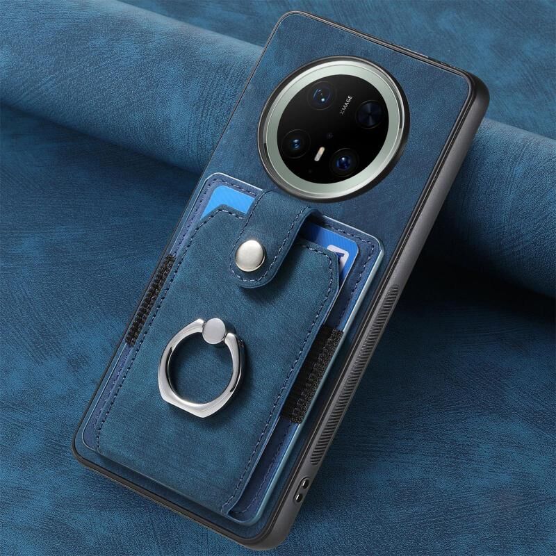 Θήκη τηλεφώνου Huawei Mate 70 Pro με υφή retro, κάρτα δακτυλιδιού και πορτοφόλι (Μαύρο)