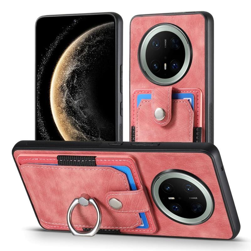 Θήκη τηλεφώνου Huawei Mate 70 Pro+ με κάρτες και δακτύλιο, υφή retro (ρόζ)